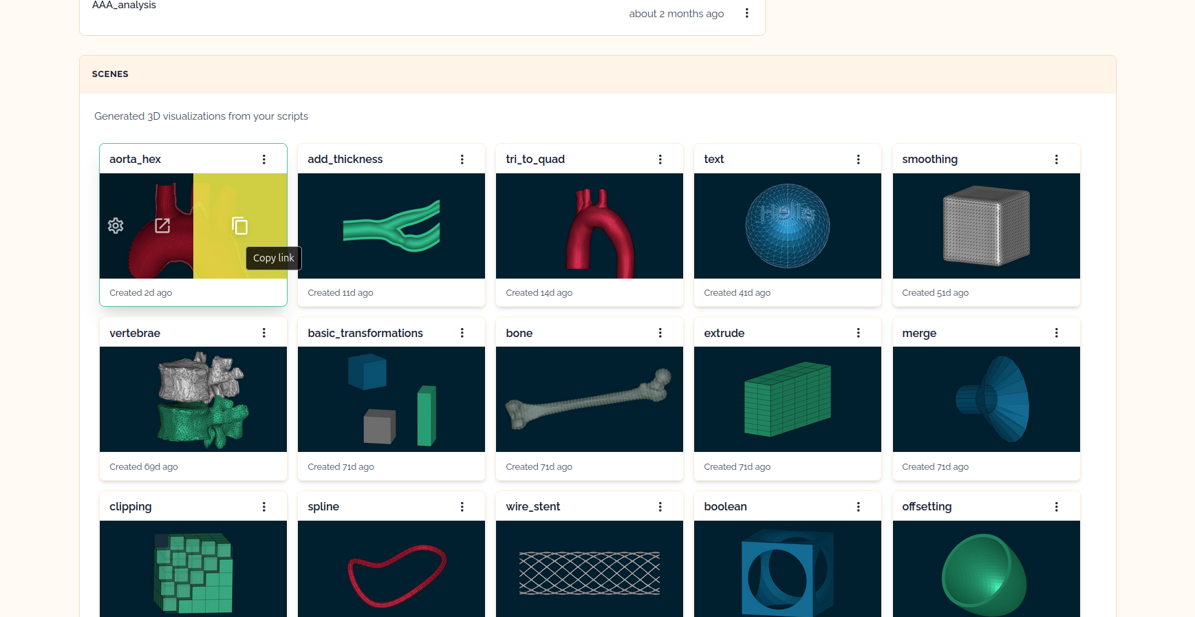 After saving a scene, it appears in your workspace dashboard. The dashboard provides an overview of all saved scenes in your workspace.