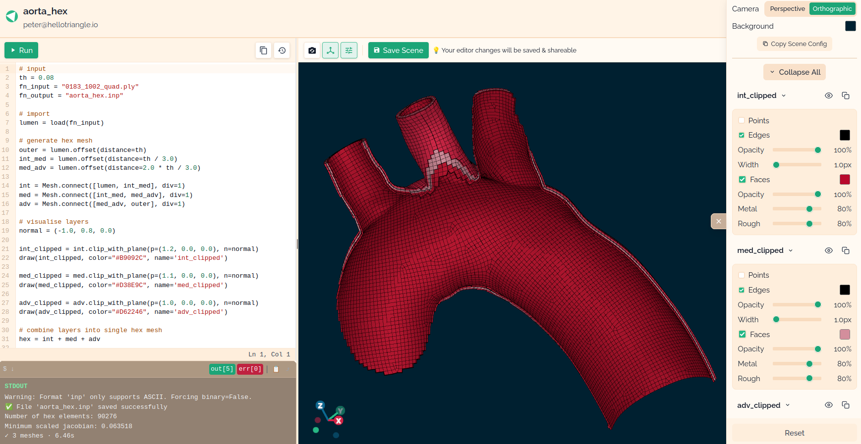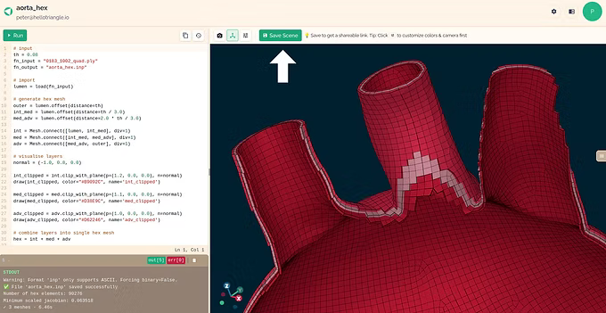Once saved, a scene can be directly opened and explored interactively in a web browser.